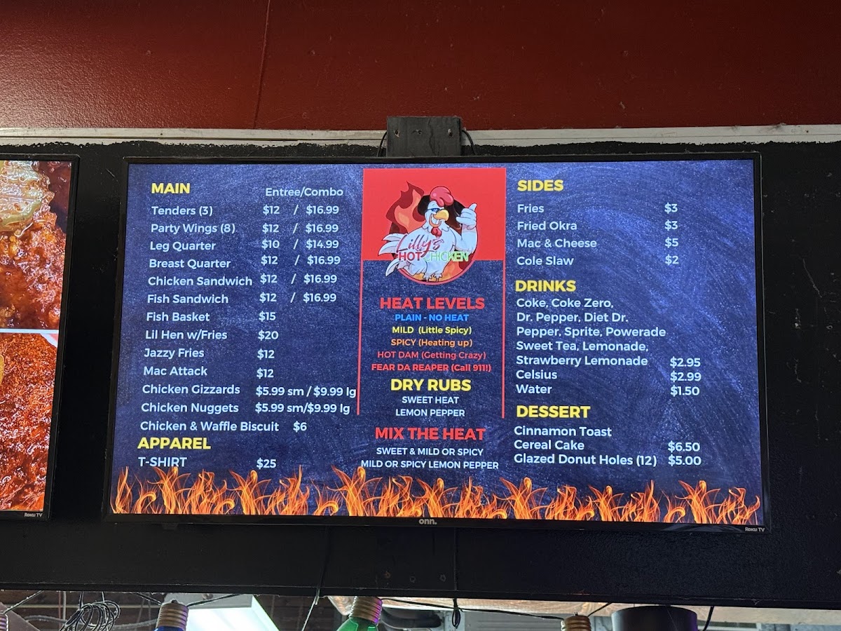 Whether you're in the mood for soul-satisfying chicken or comforting sides, Lilly's Hot Chicken promises unforgettable tastes in every dish.